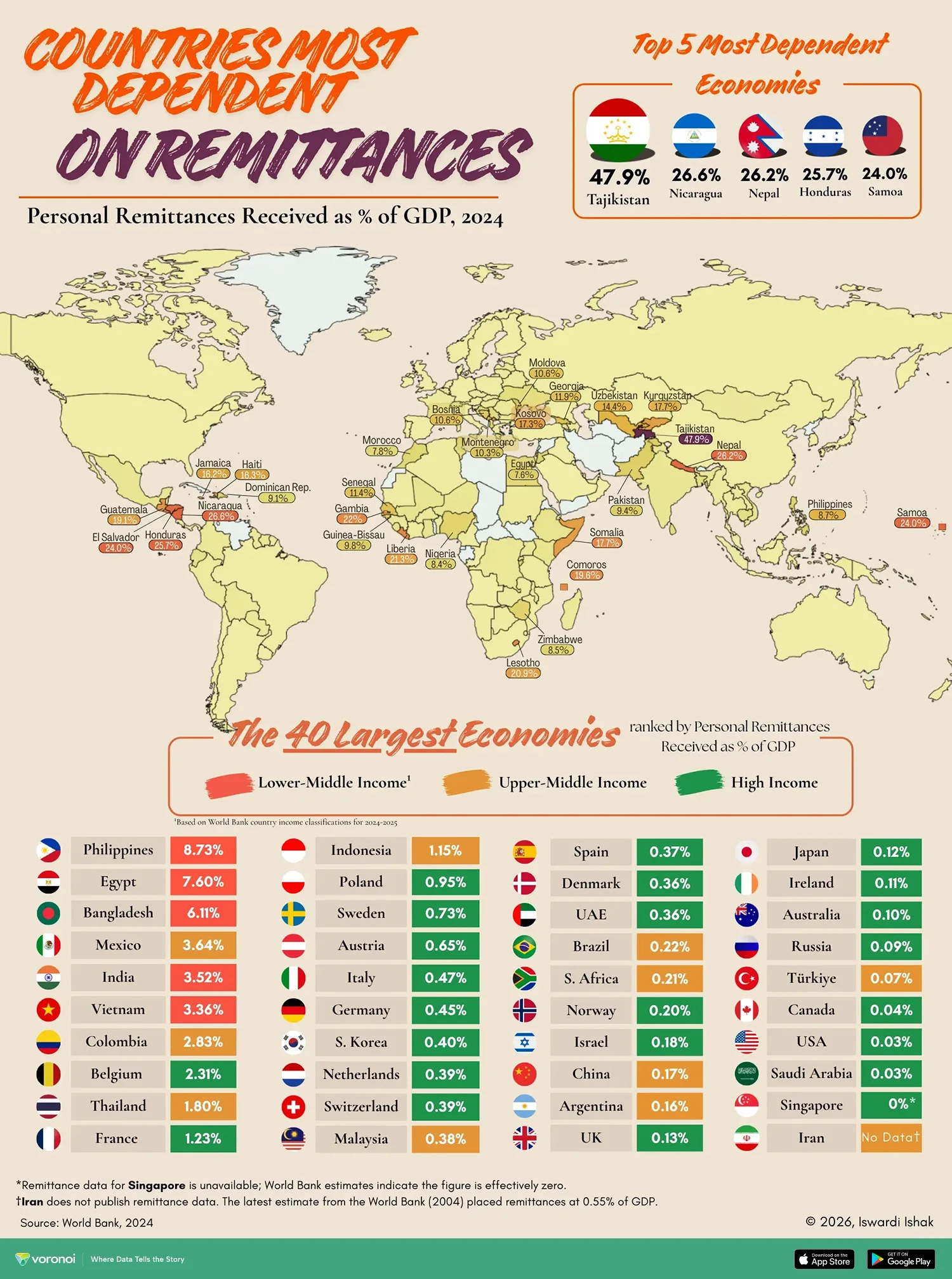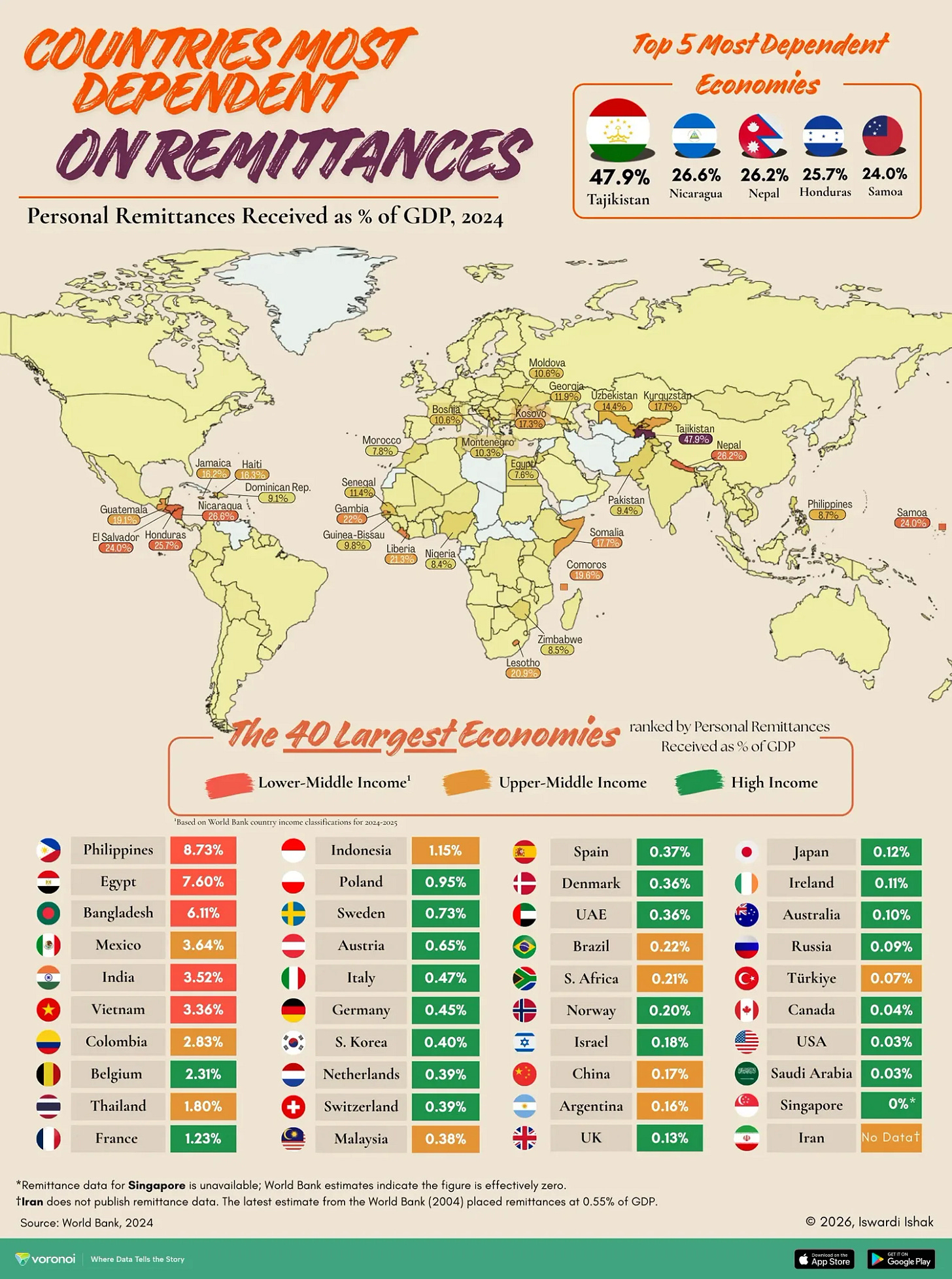 By comparison, the global average is just 0.82%, showing how concentrated remittance dependence is.