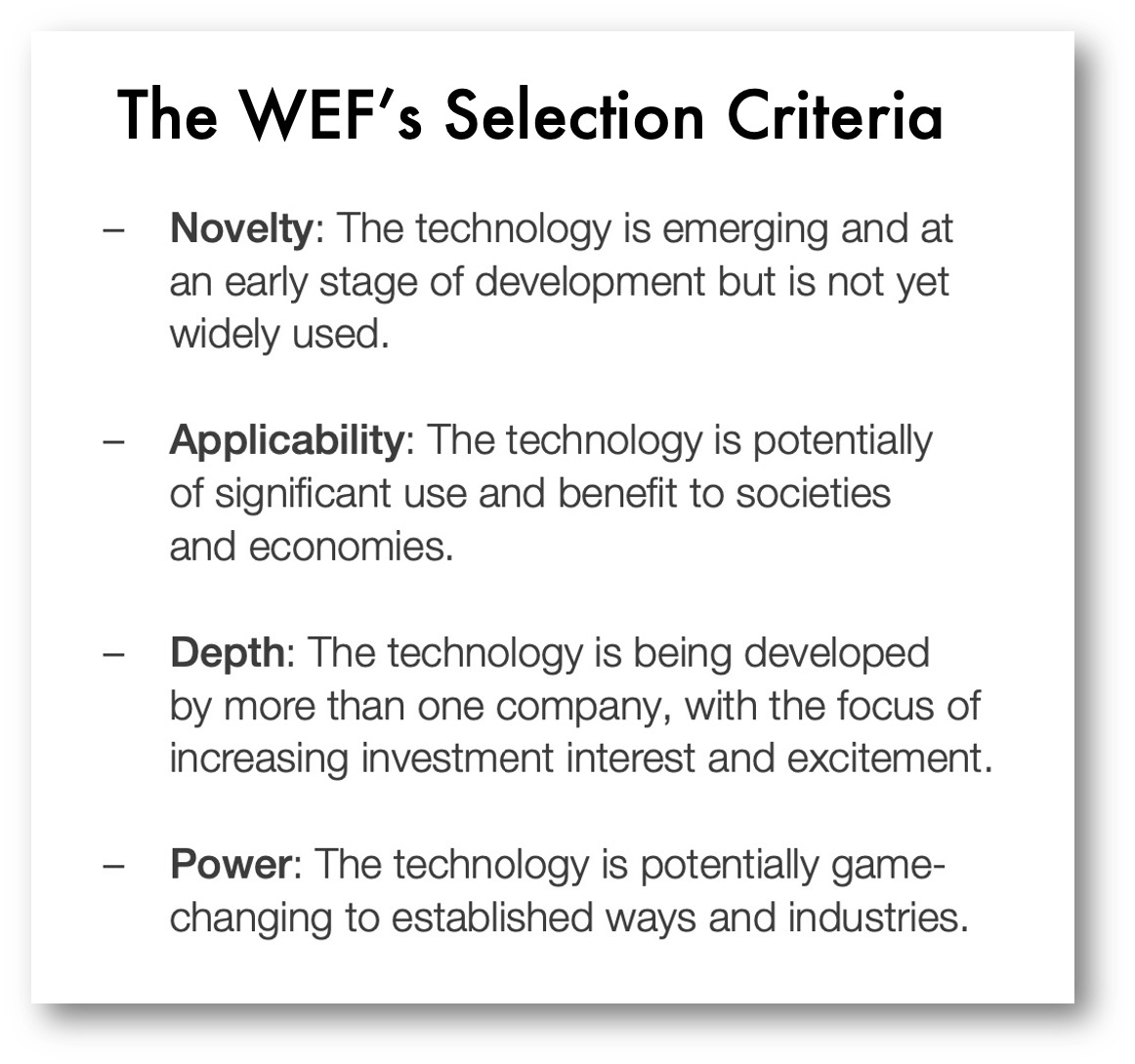 However, the big question is whether the WEF is successful in its predictions. While hardly scientific, I quickly looked at their 2012 and 2013 reports and found that they got about eight out of ten technologies right.